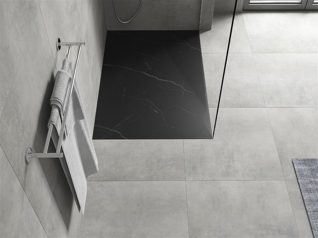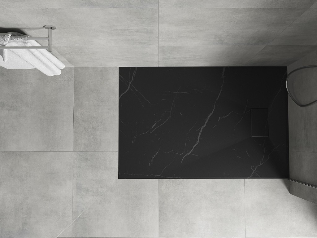 Mexen Hugo je inovatívne obdĺžniková sprchová vanička s rozmermi 120x80 cm, vyrobená z odolného materiálu SMC, ktorý zaisťuje mimoriadnu životnosť a odolnosť proti nárazu. Jeho elegantná čierna farba a štruktúra kameňa dodá každej kúpeľni moderný charakter. Sprchovú vaničku je možné inštalovať do podlahy aj na podlahu a jej tenká konštrukcia (výška iba 2,6 cm) uľahčuje prístup. Súprava obsahuje sifón, ktorý je možné z hornej strany čistiť a je možné ho odrezať, čo z neho robí mimoriadne praktický výrobok.
