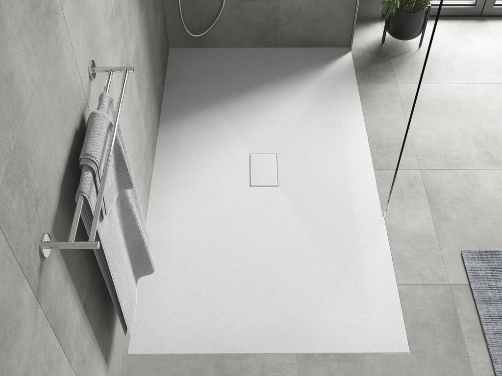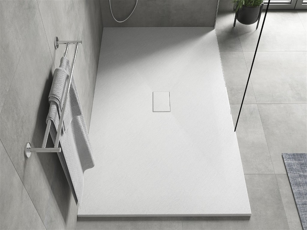 Ponúkaná sprchová, obdĺžniková, ultratenká vanička HUGO je harmóniou kvality, funkčnosti a estetiky. Sprchovú vaničku je možné položiť na podlahu , zapustiť do podlahy a pokiaľ je to nutné aj ľubovoľne rezať . Sprchová vanička je vyrobená z kompozitného materiálu SMC , ktorý je mimoriadne odolný proti vlhkosti, mechanickému poškodeniu a čistiacim prostriedkom, čo sa premieta do mimoriadnej odolnosti, ľahkosti a elegancie výrobku. Kompozitný povlak SMC , ktorý imituje kameň, vďaka svojim vlastnostiam nereaguje na zmeny teplôt, takže použitie je príjemné. Nízkoprofilový dizajn Zaisťuje pohodlné a bezpečné sprchovanie a zároveň vytvára elegantný vzhľad kúpeľne. Nízky profil sprchovej vaničky dokonale zapadá do moderných designových trendov a umožňuje inštaláciu v rovine s podlahou, čím eliminuje akékoľvek prekážky pri každodennom používaní sprchy. Toto riešenie zaručuje nielen pohodlie, ale aj ľahké čistenie.