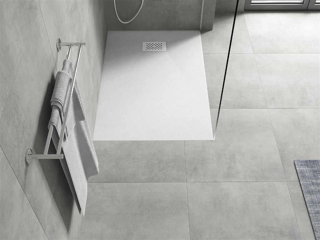 Technické údaje: Rozměr: 100x90x2,6 cm Barva: Bílá Typ: Obdélníkový, Ultra plochý Instalace: Do podlahy nebo na podlahu Materiál: SMC - plast Kamenná struktura Možnost řezání sprchové vaničky Odolný výrobek, který se nedeformuje Maximální stabilita díky dobré odolnosti proti nárazu Sifon s horním čištěním součástí balení Průměr odtoku: 90 mm Povrchová úprava krytu: Bílá