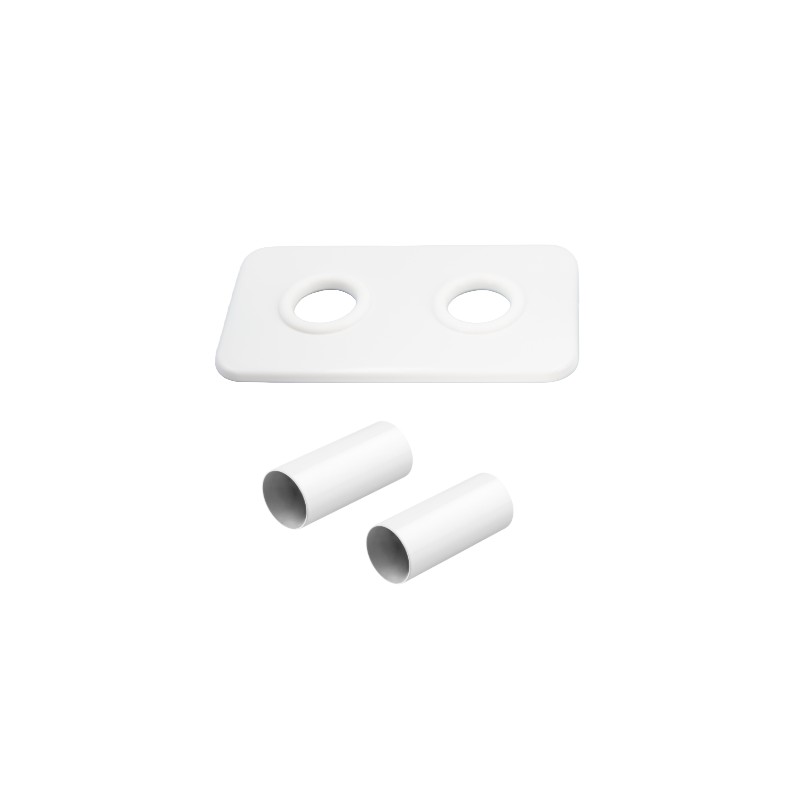 Stredová obojstranná (ľavá aj pravá) termostatická sada HYBRID vr. krycie rozety a 2 krycích trubičiek (mosadz) je určená na pripojenie radiátorov na rozvody TÚV s vývodom zo steny s rozstupom 50mm.