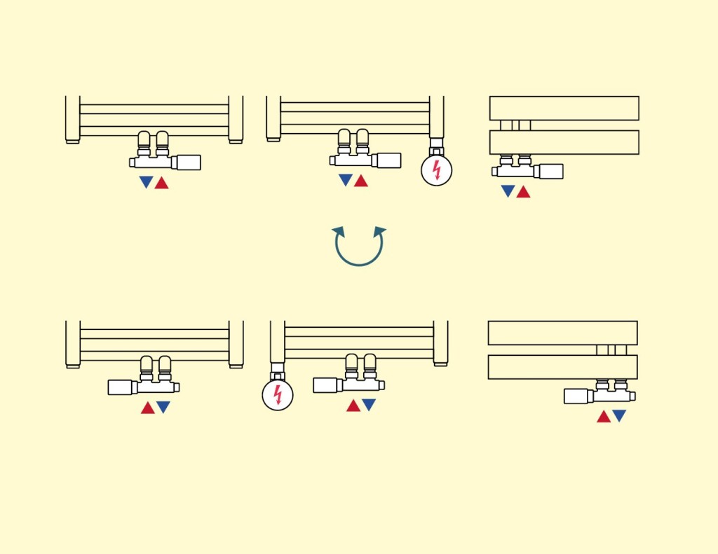 Pre kombinovanú prevádzku pri klasických radiátoroch musíte objednať sadu + el. tyč v odporúčanom výkone, ktorú môžete inštalovať vľavo alebo vpravo do radiátora.