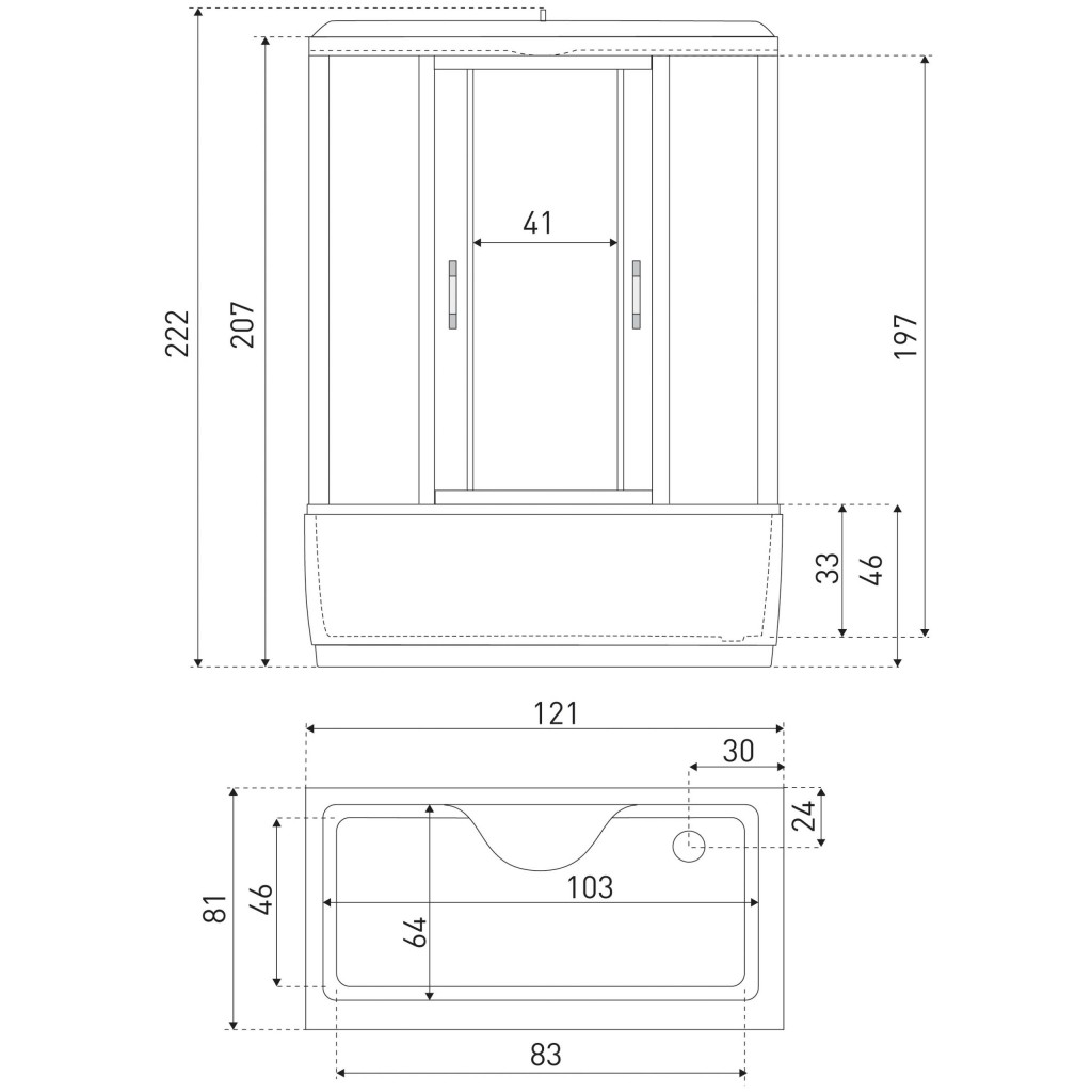 - Rozmery kabíny: 121 x 85,5 x 215 cm