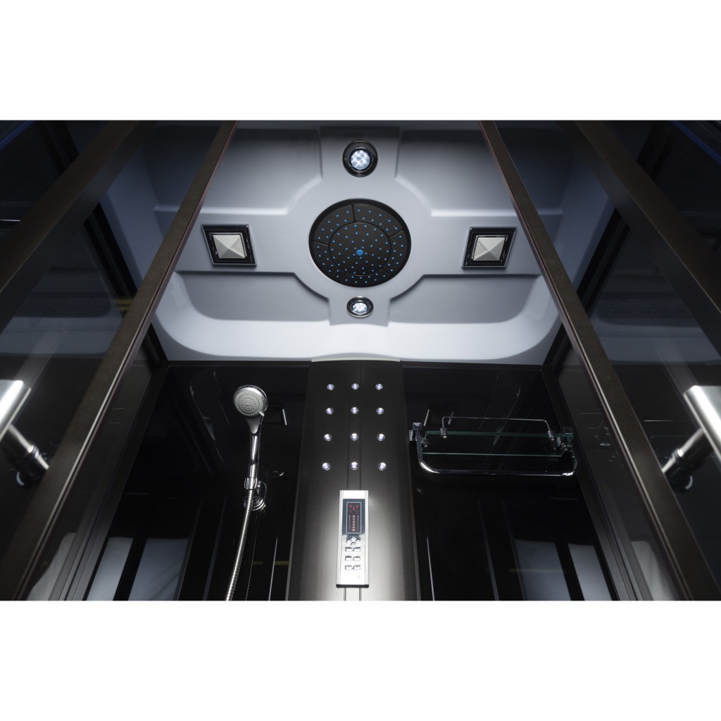 Vybavenie - masážny prístroj na nohy, dávkovač mydla, sklenená polička s hrazdami, rádio, LED osvetlenie, hydromasáž, kaskádový výtok.