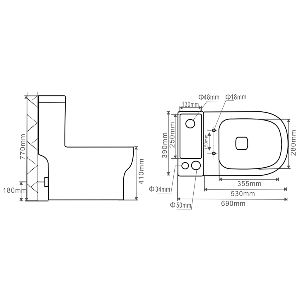 POZOR – pre spodný odpad je nutné dopojiť odpadovú rúrku na zadný vývod (spodný vývod nie je v tele keramiky) - misa s nádržkou ako jeden kus keramiky