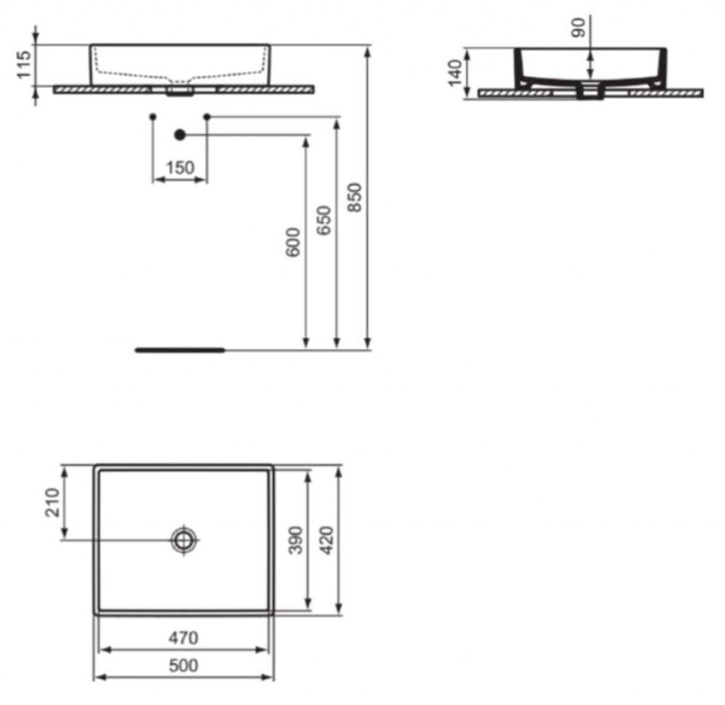 Umývadlo na postavenie na dosku alebo skrinku