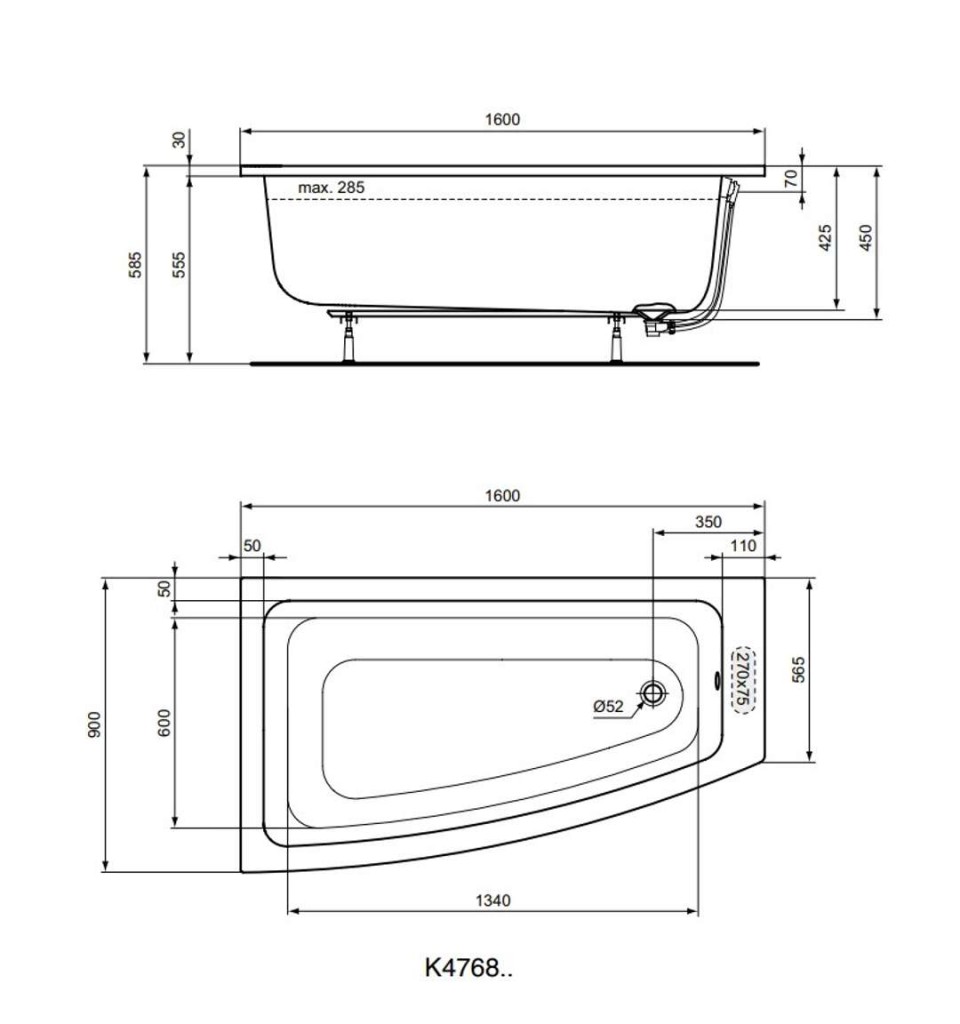 Nožičky, odtoková a prepadová súprava nie sú súčasťou dodávky.