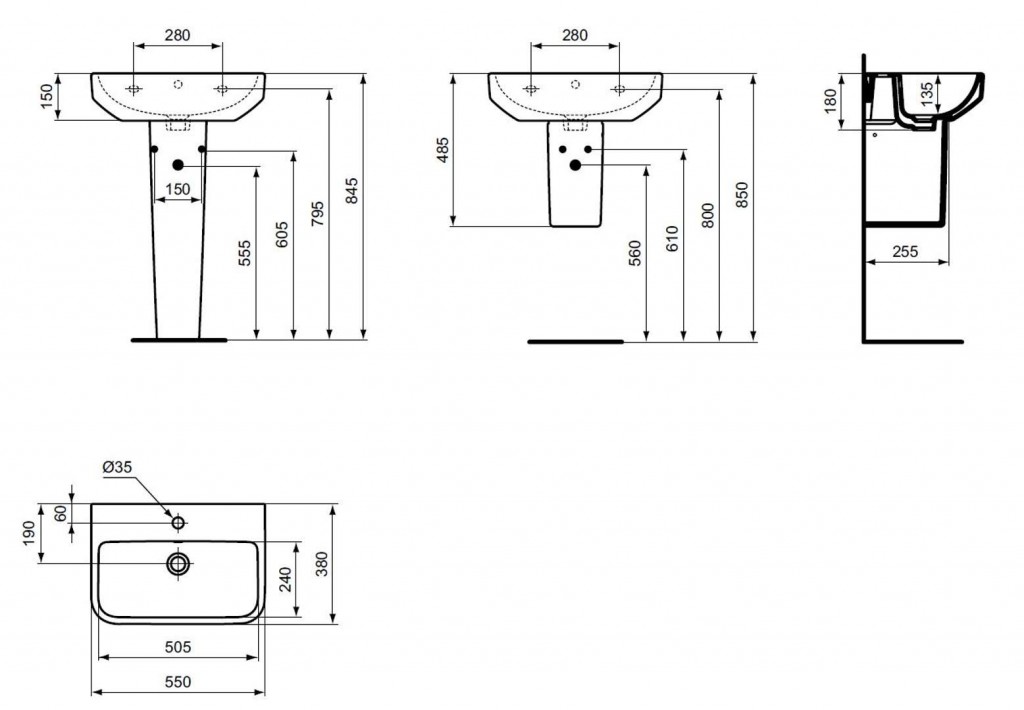 Umývadlový sifón, výpust ani upevňovacia sada nie sú súčasťou balenia.