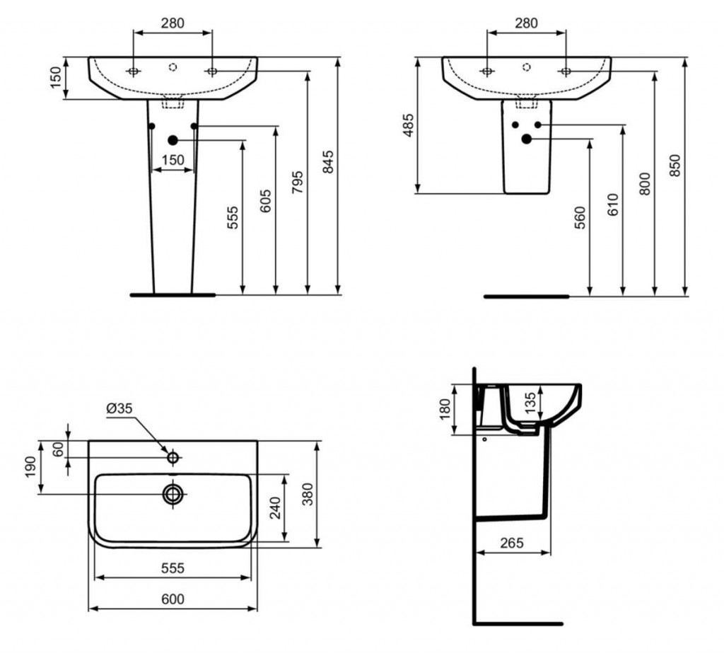 - výška umývadla 180 mm
