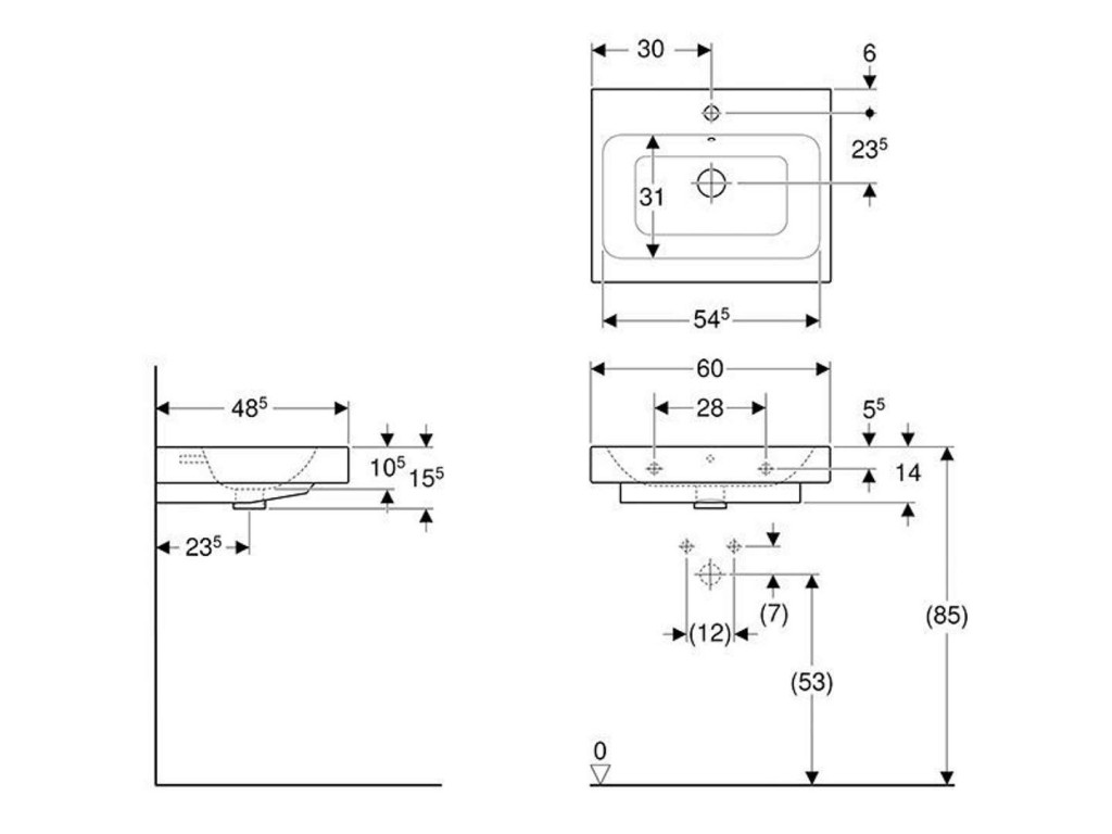 Umývadlo na dosku s jedným otvorom pre batériu as prepadom