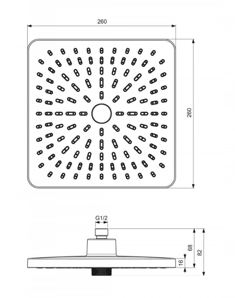 - veľkosť sprchového modulu: 260 × 260 mm