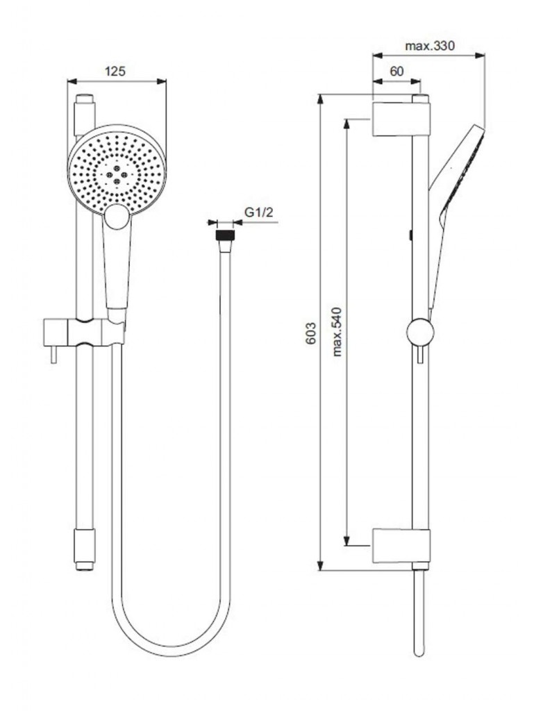 - sprchová tyč s posuvným kovovým držiakom sprchy