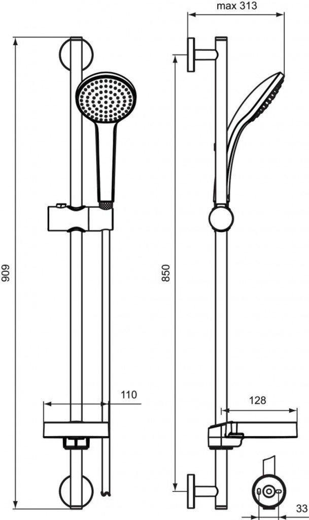Sprchová tyč 900 mm s posuvným držiakom sprchy.
