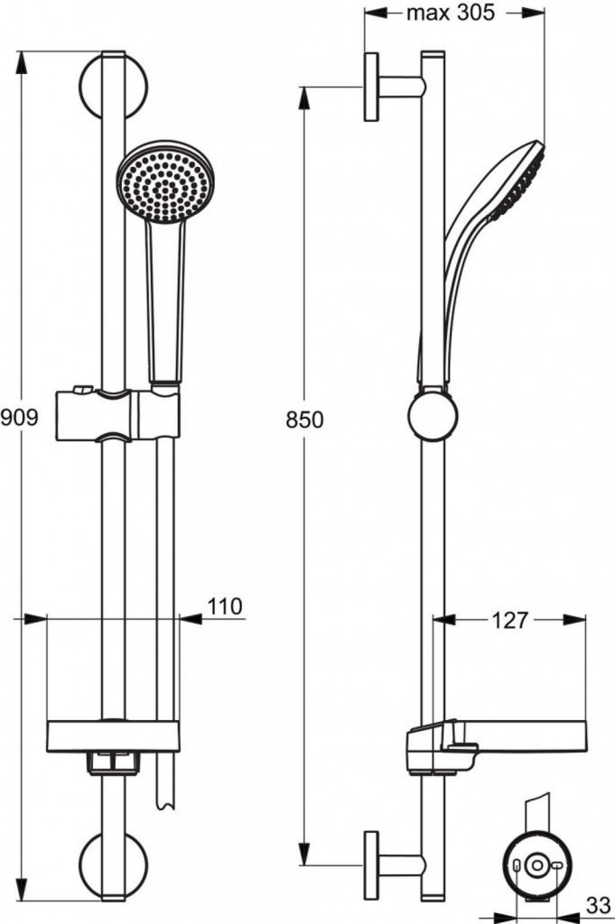 Sprchová tyč 900 mm s posuvným držiakom sprchy.