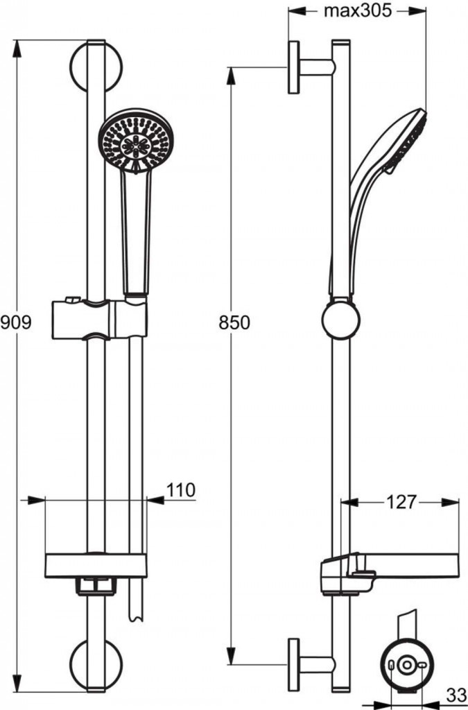 Sprchová tyč 900 mm s posuvným držiakom sprchy.