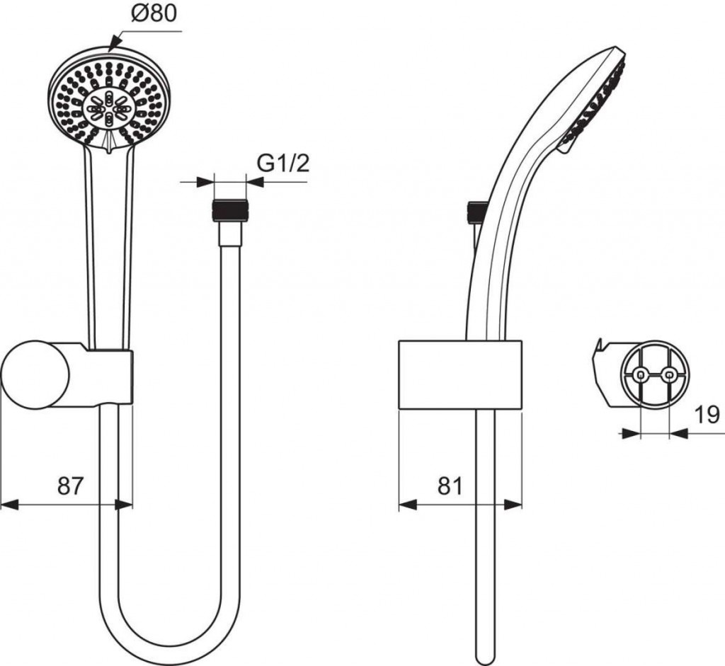 3-funkčná ručná sprcha priemer 80 mm (dážď / tropický dážď / masážny prúd).