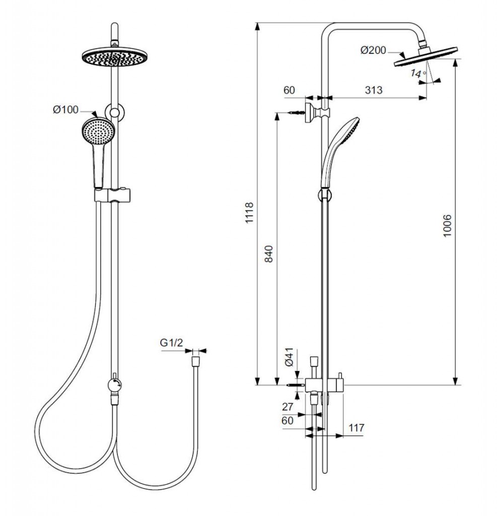 Sprchový systém pre kombináciu s nástennou batériou obsahuje