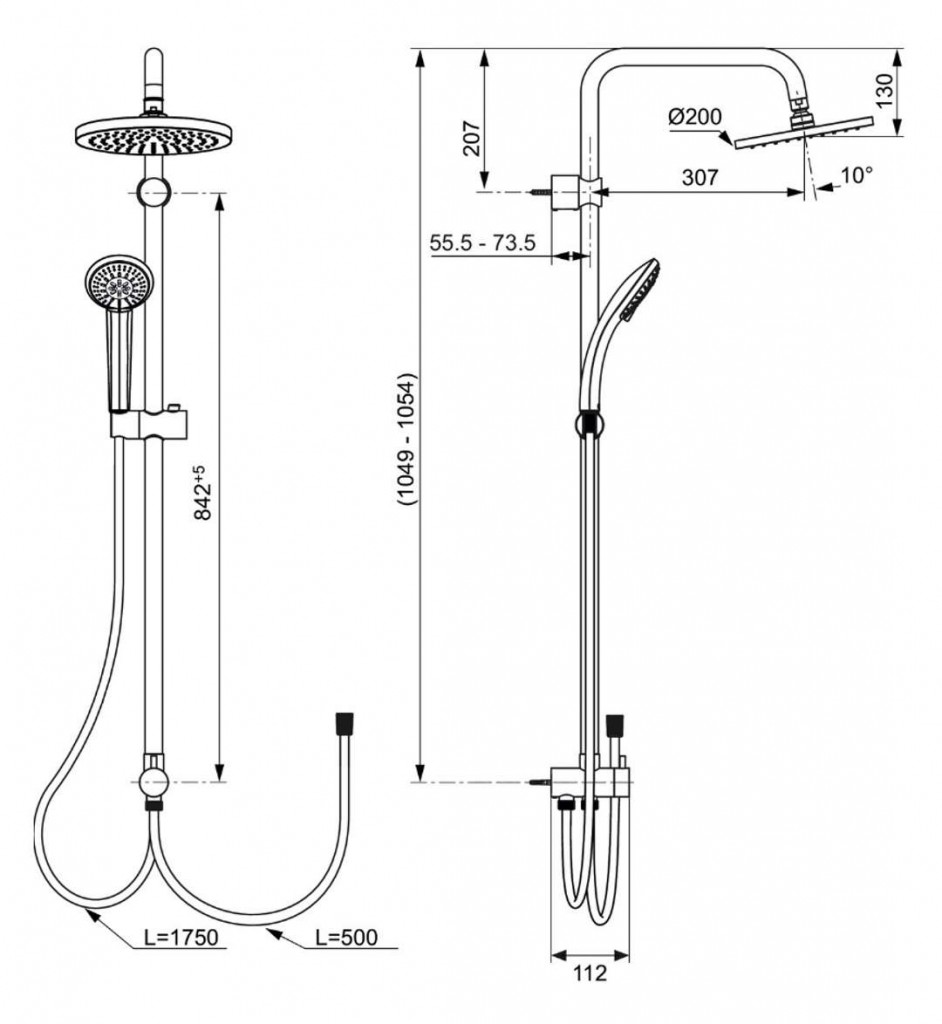 sprchovú tyč, keramický dvojcestný prepínač a držiak sprchy