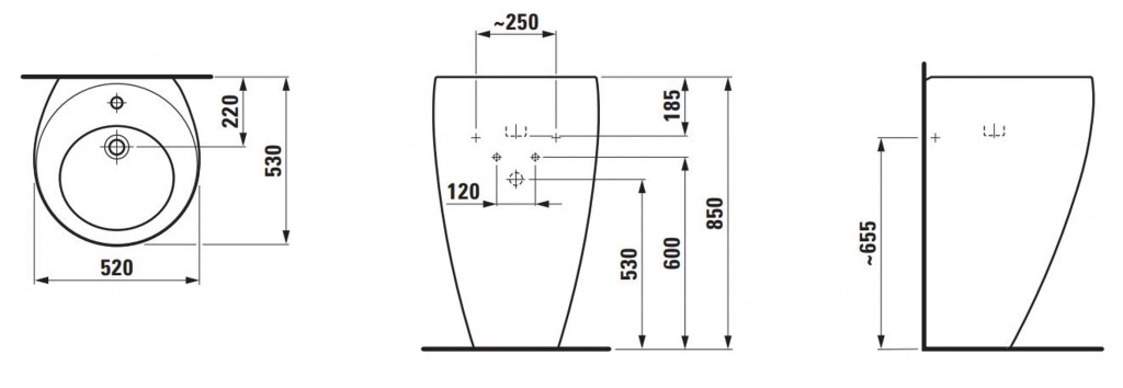 - bez otvoru pre umývadlovú batériu