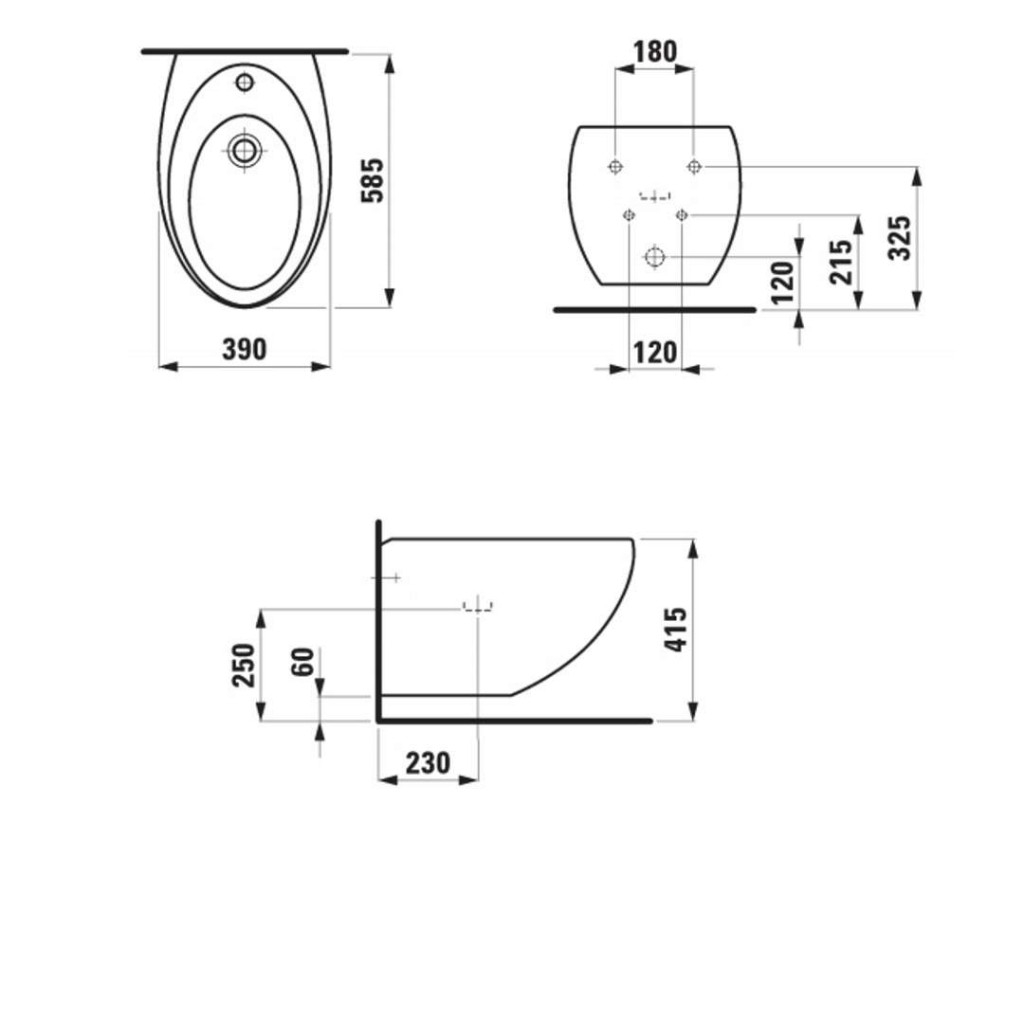 Závesný bidet s 2 otvormi pre bočné prívod vody