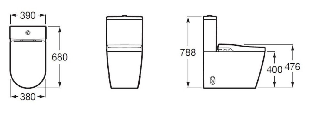 Roca In-Wash Inspira kombinované WC sa sprchovacími funkciami s uzavretým oplachovacím kruhom, vrátane nádrže.