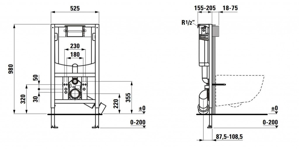 - inštalácia splachovacieho tlačidla - spredu alebo zhora