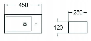 Samotné umývadlo je dlhé 45 cm a hlboké 25 cm . Umývadlo nemá bezpečnostný prepad, otvor pre batériu má na pravej strane umývadla.