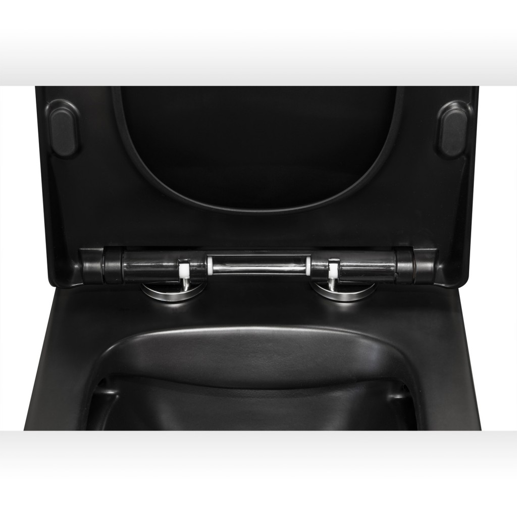 Čierna závesná WC misa Tinos je vyrobená z kvalitnej sanitárnej keramiky a ponúka elegantný vzhľad bez oplachového kruhu (technológia CleanOn), čo uľahčuje údržbu a zvyšuje hygienu. Súčasťou je tenké duroplastové sedátko SLIM s funkciou pomalého sklápania (soft-close) a ľahkého uvoľnenia pre jednoduché čistenie.