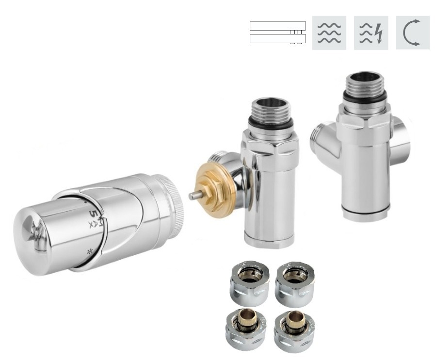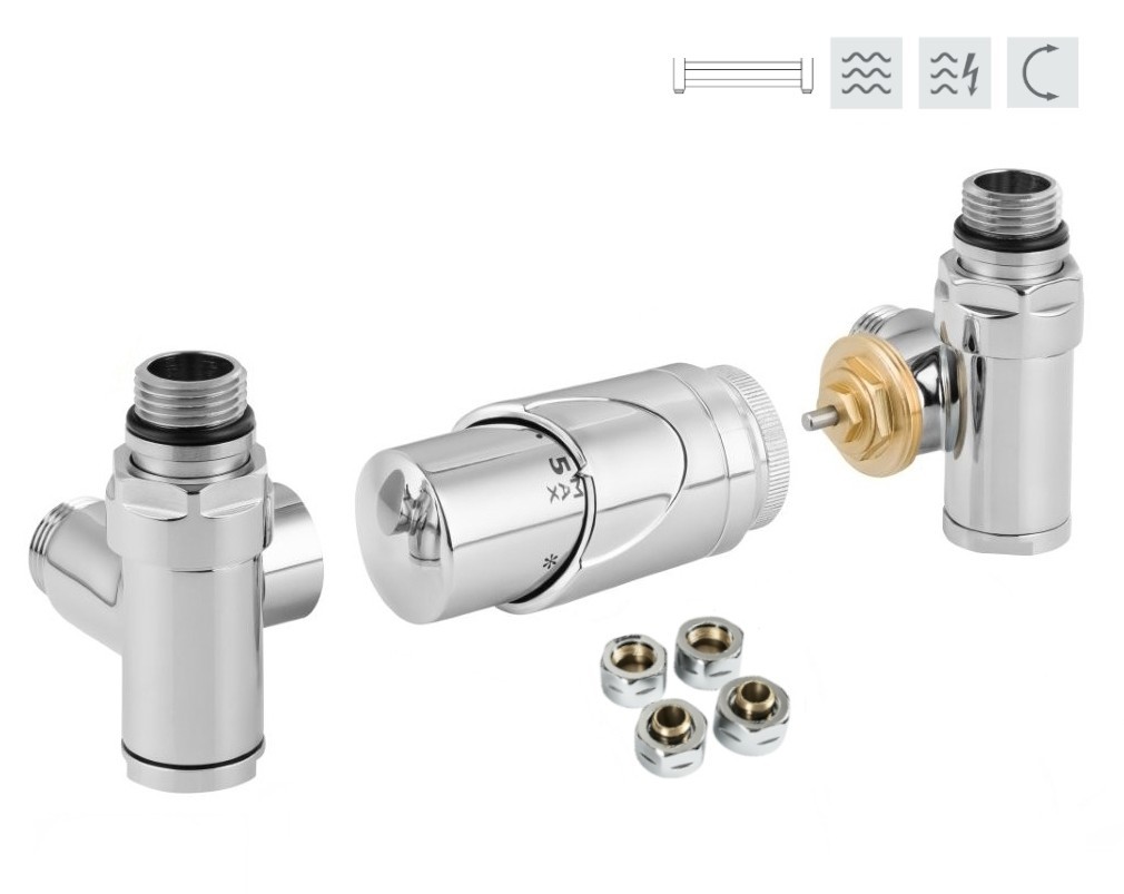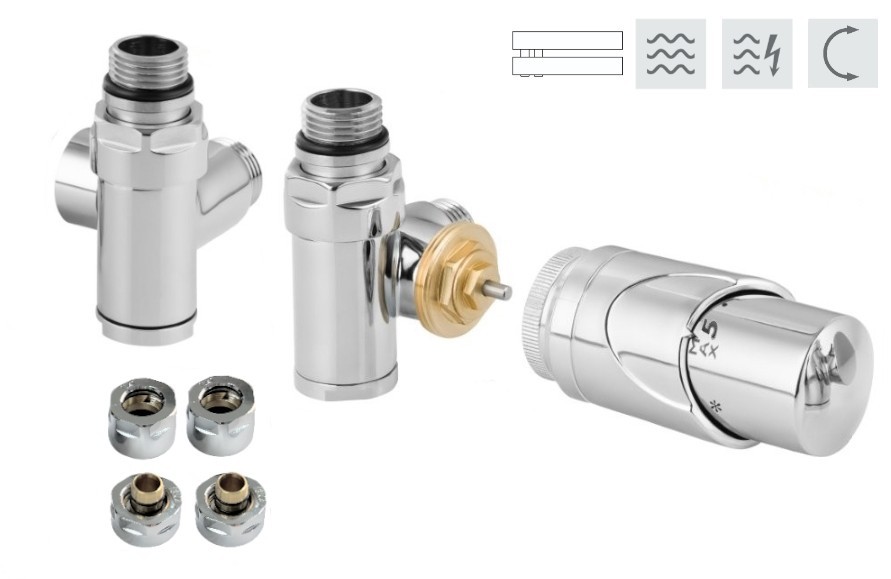 Rohový pripojovací ventil INTEGRATO-SADA (Z8) je určený pre vykurovacie telesá s klasickým (krajným - na rozstup) pripojením, najmä pre kúpeľňové telesá – tzn. rebríky, ktoré umožňujú priame osadenie elektrickej vykurovacej tyče . Termostatický ventil, regulačné šróbenie, termostatická hlavica je k dispozícii v 3 farbách vždy s veľmi kvalitnou povrchovou úpravou. Prívod je vždy na strane termostatickej hlavice. Ventily dodávame vrátane zverného šróbenia na Cu aj na PEX-AL-PEX.