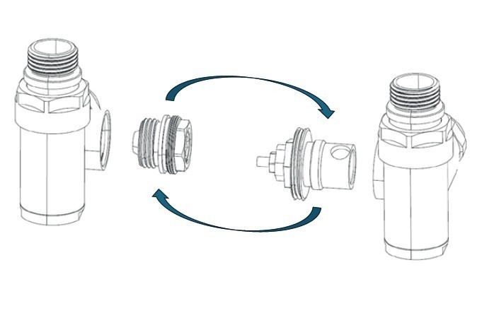 Pre kombinovanú prevádzku pri klasických radiátoroch musíte objednať sadu + el. tyč v odporúčanom výkone, ktorú môžete inštalovať cez ventil vľavo alebo vpravo do radiátora