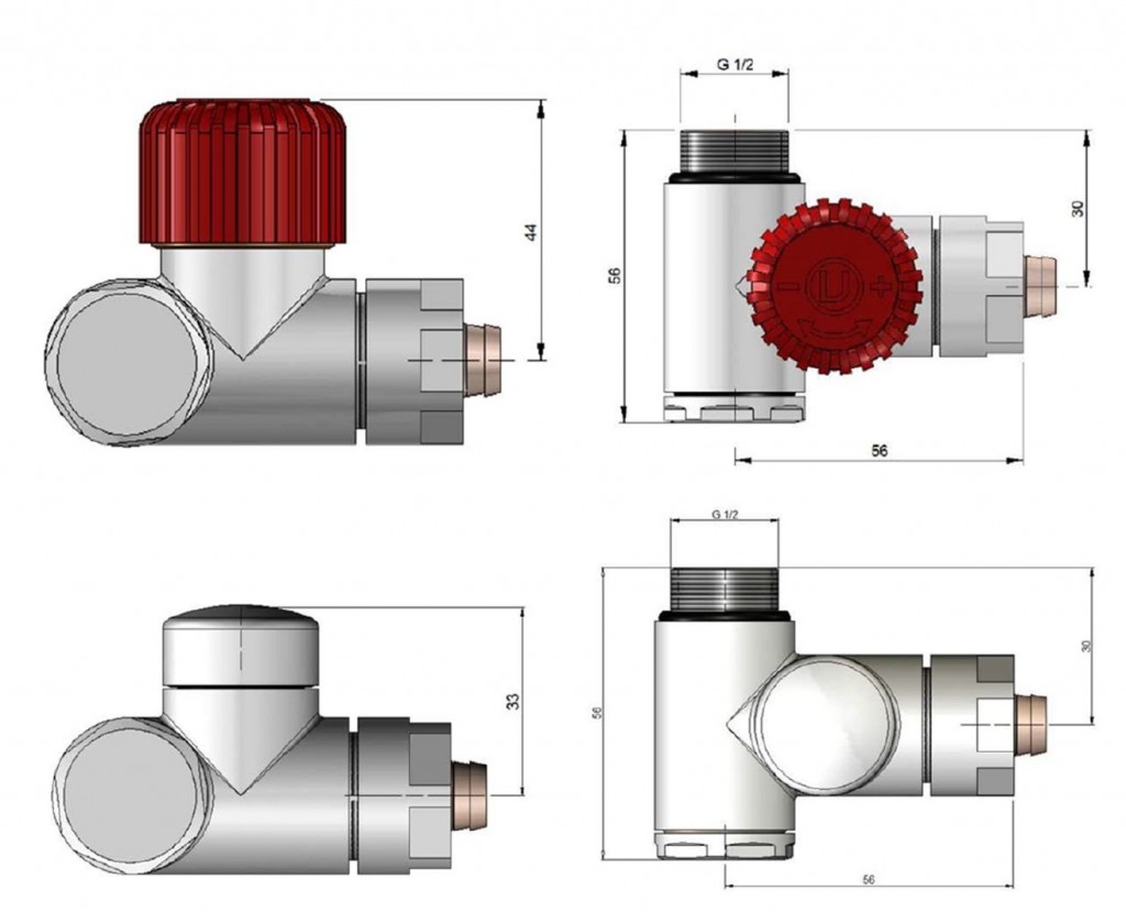 Ventil je určený na pripojenie radiátorov na rozvody TÚV s vývodom zo steny. Umožňuje priame osadenie elektrickej vykurovacej tyče.