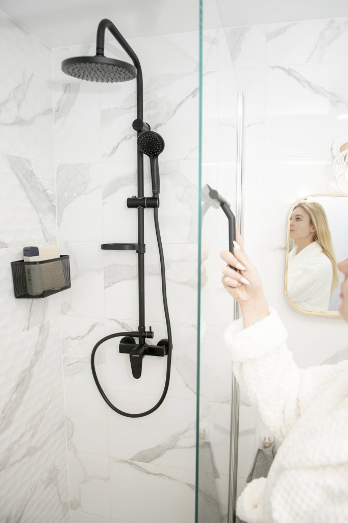 Sprchový stĺp Intra predstavuje riešenie dva v jednom. Sprcha je integrovaná s zmiešavacou batériou, takže odpadá nutnosť zladiť sprchovú batériu. Všetky komponenty sú v chrómovej a čiernej farbe. Vďaka všestrannému designu sa perfektne hodí do každej kúpeľne. V sprche si môžete vybrať z troch režimov prúdu: dážď, masážny a zmiešaný. Sprchová hlavica je vybavená systémom proti vodnému kameňu, ktorý ľahko odstraňuje vodný kameň z vody. Okrem batérie výrobca dodáva aj pripojovaciu hadicu pre jednoduché pripojenie stĺpu Intra na inštaláciu. Na tyč je možné navyše namontovať misku na mydlo, do ktorej si môžete umiestniť svoju obľúbenú kozmetiku a mať ju vždy po ruke.