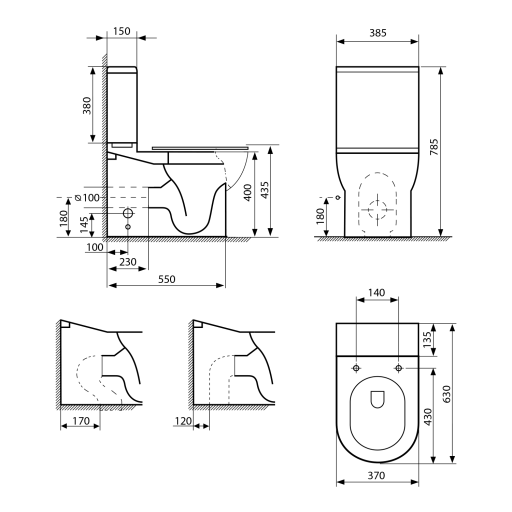 Rimless (NoRim) – toalety bez tradičného oplachového kruhu. Hladký povrch bez dutín a záhybov. Oplachová voda vyteká rozdeľovačom vody iba zo zadnej časti WC misy a vďaka špeciálnemu tvaru keramiky dokonale opláchne vnútorný priestor. Výhodou je ľahká údržba a čistenie WC misy.