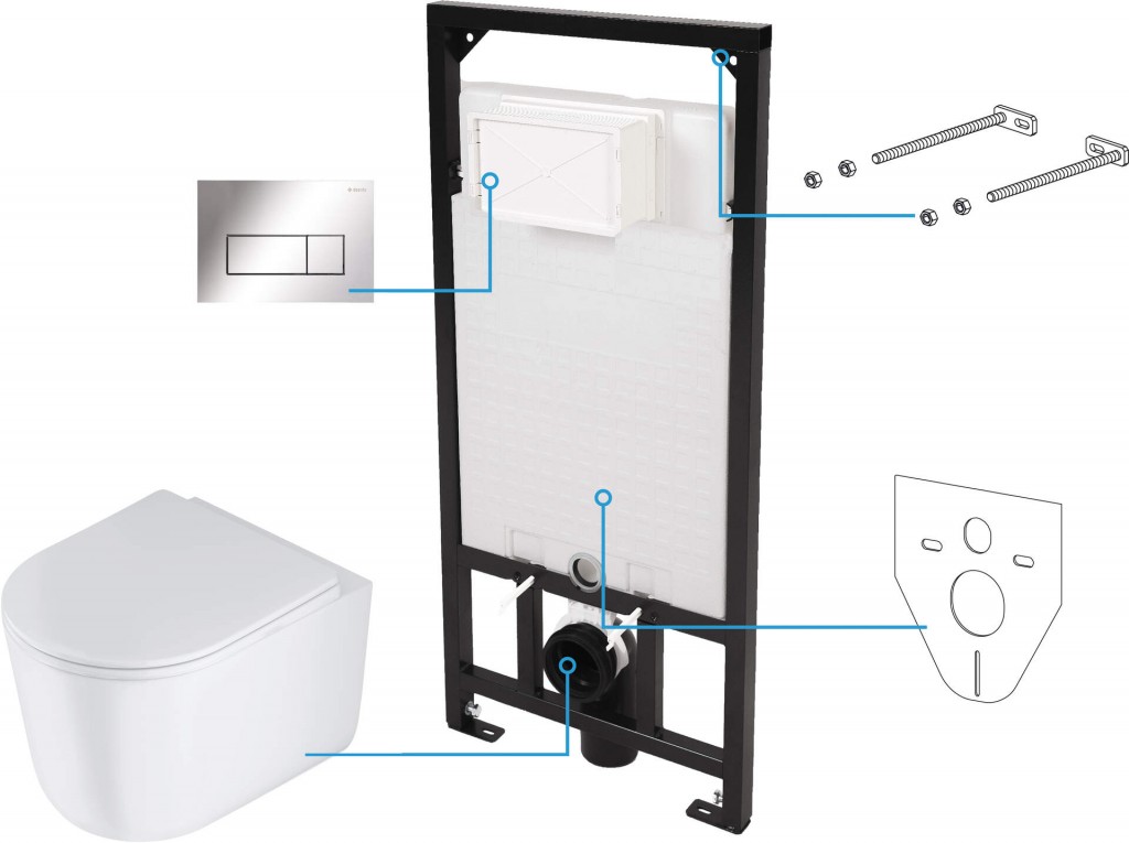 Toaletný set so závesnou misou bol navrhnutý s ohľadom na vysokú estetiku miestnosti a ľahké čistenie. Odolná, vysoko kvalitná keramika nepraská a nemení farbu ani po dlhej dobe používania, čo potvrdili testy Deante. Univerzálna, klasická biela farba toaletného setu dodáva miestnosti eleganciu. Vhodné pre zapustené inštalácie. Elegantné prevedenie ozdobí každú kúpeľňu. Jedná sa o kompletnú sadu 6v1, ktorá obsahuje: podomietkový rám, toaletnú misu bez okraja, ticho padajúce sedadlo, elegantné splachovacie tlačidlo, podložku tlmiacu nárazy a montážne skrutky.