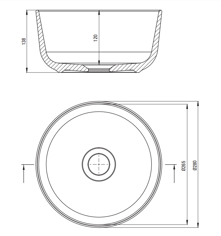 Samotné umývadlo na dosku je široké 28 cm, hlboké 28 cm a na výšku má 13,8 cm , čo nabáda k tomu, že je možnosť umiestnenia dvoch umývadiel vedľa seba /pokiaľ vám priestor dovolí/. Umývadlo nemá bezpečnostný prepad ani otvor pre batériu . Preto k nemu vyberajte vysokú umývadlovú batériu alebo podomietkovú umývadlovú batériu . Dôležité je vybrať správnu výpusť . Vhodná je univerzálna alebo určená pre umývadlá bez prepadu.