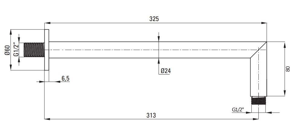 - nástenné sprchové ramienko dĺžky 325 mm ( NAC_N47K )