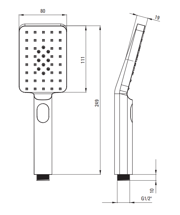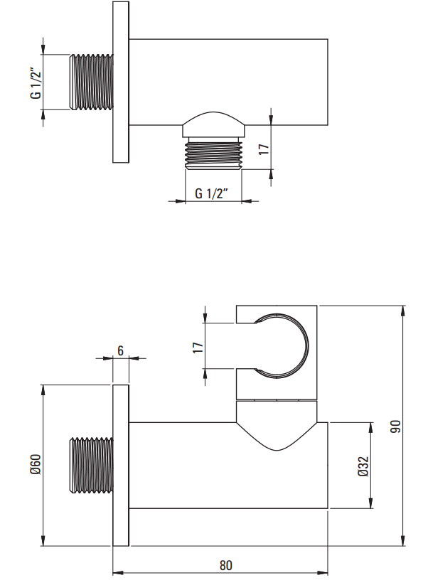 - uhlové, mosadzné dopojenie pre hadicu s držiakom ručnej sprchy