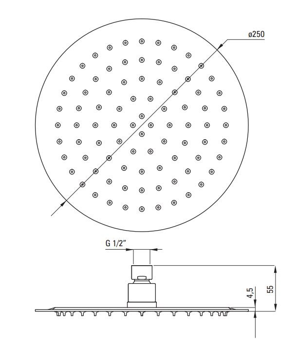 • ultra tenká mosadzná hlavová sprcha (NAC000K ), rozmer: ø25 cm, so systémom Anti-calc , ktorý uľahčuje odstraňovanie vodného kameňa