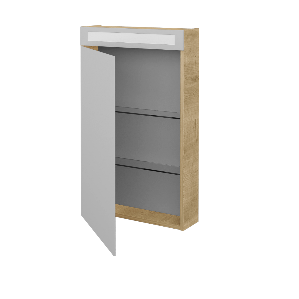 Kúpeľňová galérka AIR GAOE 50 je vyrobená z kvalitných LTD dosiek s možnosťou úpravy povrchu lakovaním (lesklým/matným) alebo v niektorom z našich dekorov a drevodekorov. K dispozícii je tiež úprava Individual podľa vzorníka RAL/NCS.