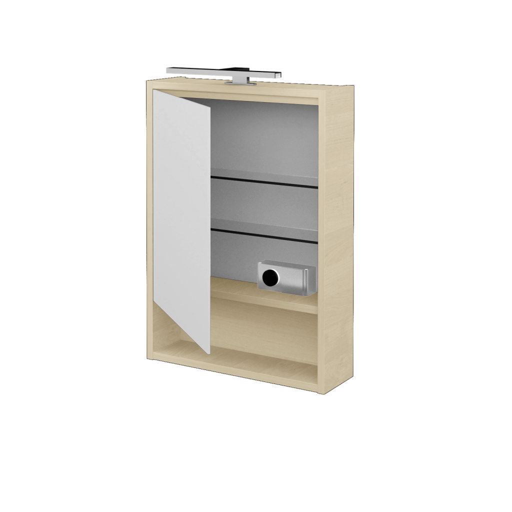 ParametreGalérka FOCUS GAOE 50 je konštruovaná ako jednodverová s obojstranným zrkadlom. Vnútorný priestor galérky je rozdelený pomocou 2 sklenených a nastaviteľných políc, vďaka čomu vzniká praktický priestor na uloženie všetkých doplnkov, ako je kozmetika, hygienické potreby atď. Veľkou výhodou galérky je el. zásuvka 230 V (vnútri galérky) a vypínač pre (5 W, teplota 4 000 K). Galérka spĺňa krytie IP 44.