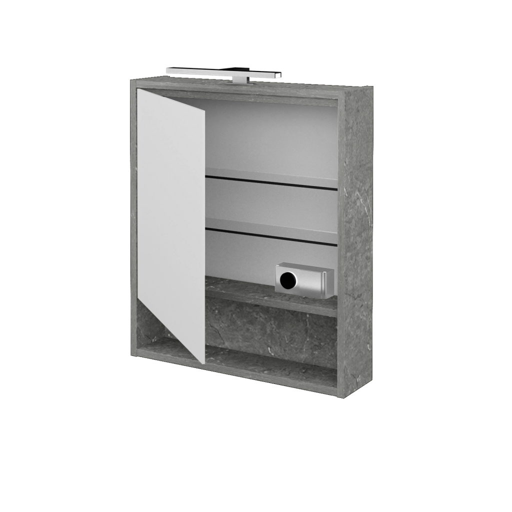 Parametre galérkyGalérka FOCUS GAOE 60 je konštruovaná ako jednodverová s obojstranným zrkadlom. Vnútorný priestor galérky je rozdelený pomocou 2 sklenených a nastaviteľných políc, vďaka čomu vzniká praktický priestor na uloženie všetkých doplnkov, ako je kozmetika, hygienické potreby atď. Veľkou výhodou galérky je el. zásuvka 230 V (vnútri galérky) a vypínač pre (5 W, teplota 4 000 K). Galérka spĺňa krytie IP 44.