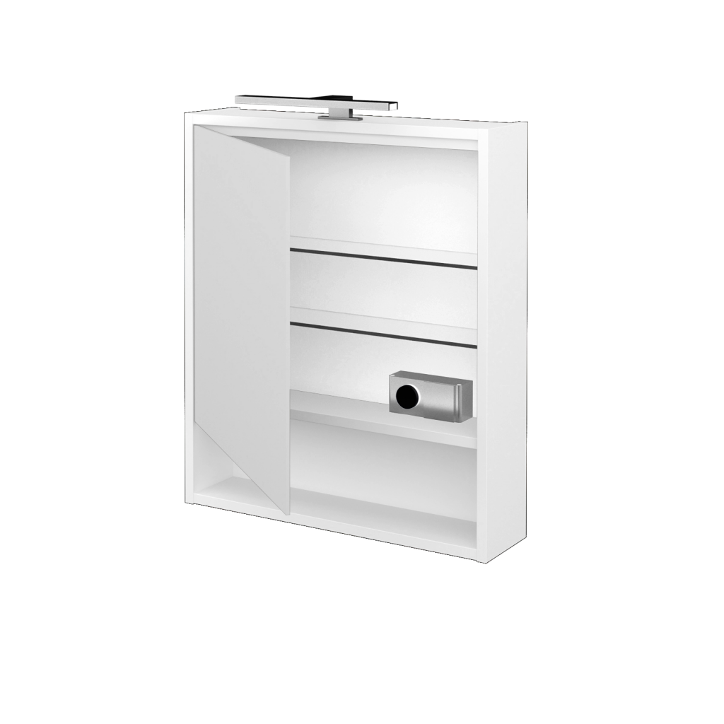 Parametre galérkyGalérka FOCUS GAOE 60 je konštruovaná ako jednodverová s obojstranným zrkadlom. Vnútorný priestor galérky je rozdelený pomocou 2 sklenených a nastaviteľných políc, vďaka čomu vzniká praktický priestor na uloženie všetkých doplnkov, ako je kozmetika, hygienické potreby atď. Veľkou výhodou galérky je el. zásuvka 230 V (vnútri galérky) a vypínač pre (5 W, teplota 4 000 K). Galérka spĺňa krytie IP 44.