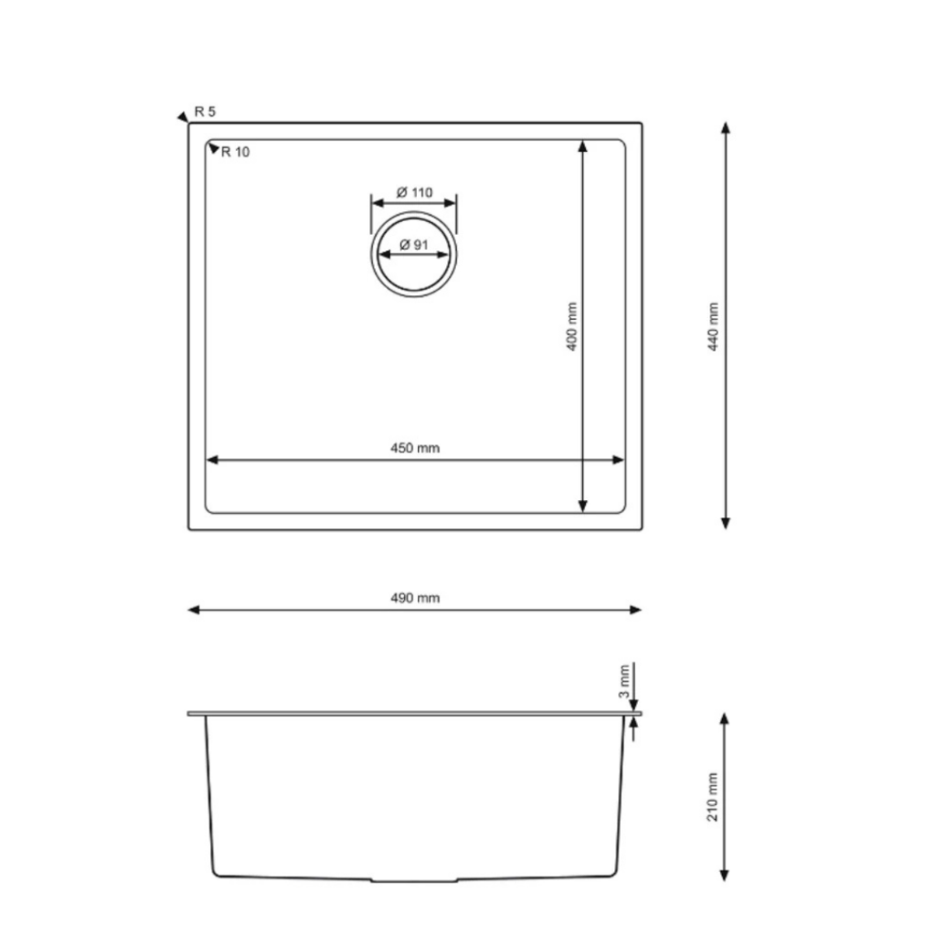 - rozmery drezu: 470 × 450 × 210 mm
