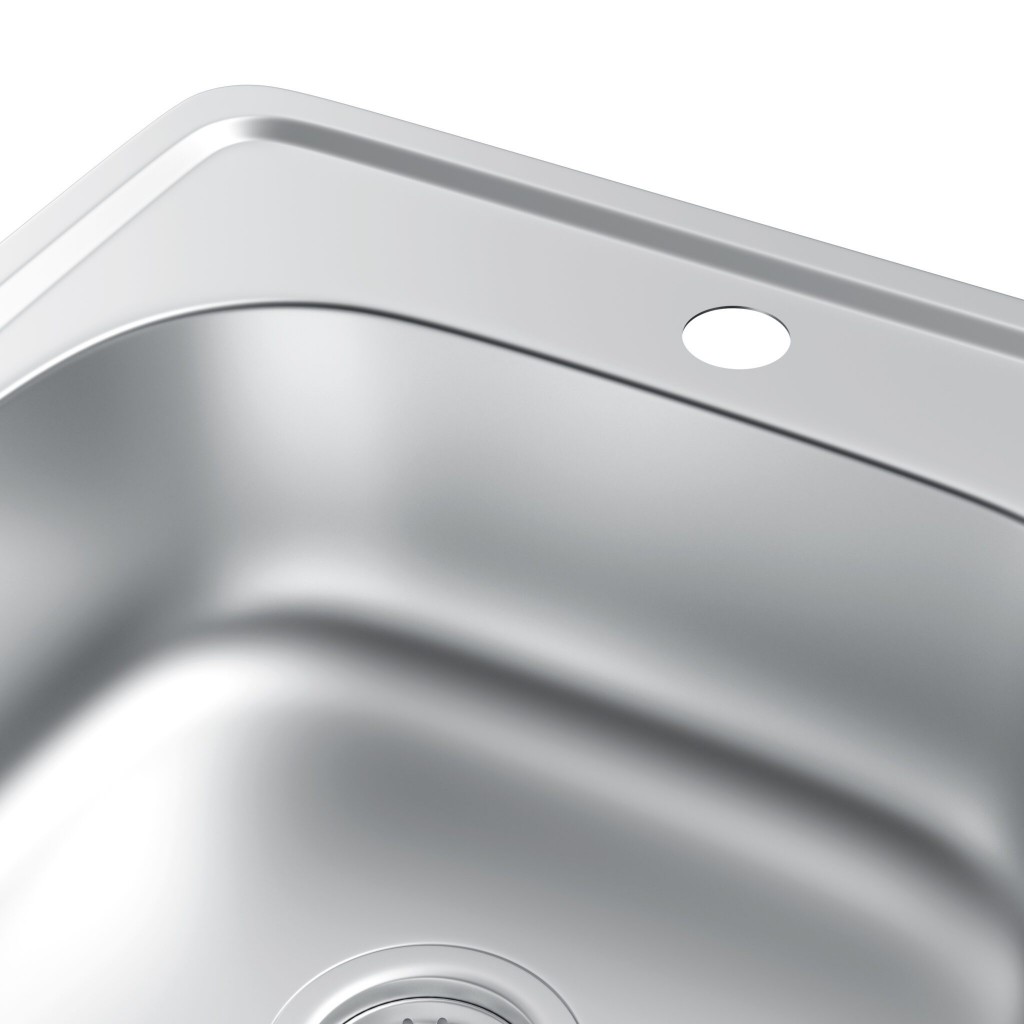 Jednokomorový nerezový drez 48×48 cm je praktickým riešením pre menšie kuchyne alebo ako doplnkový drez.