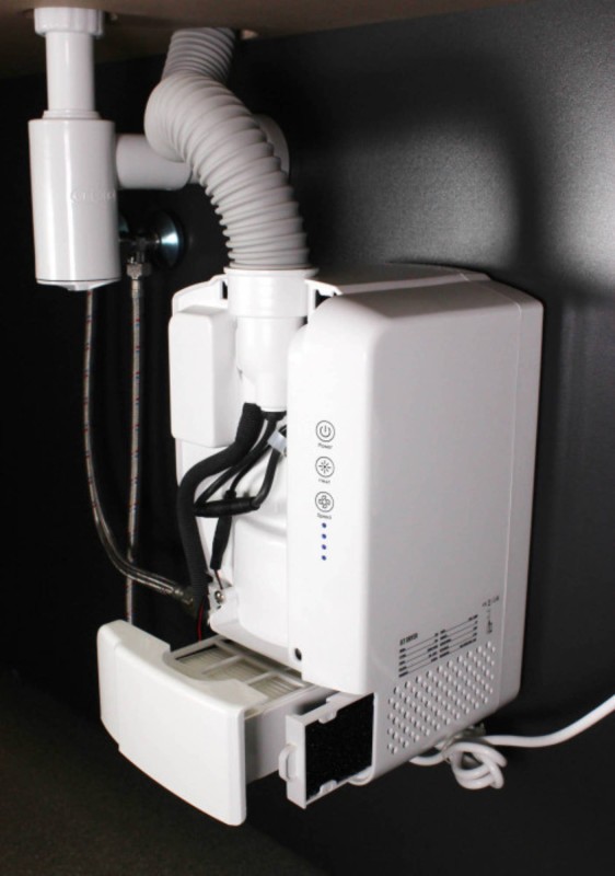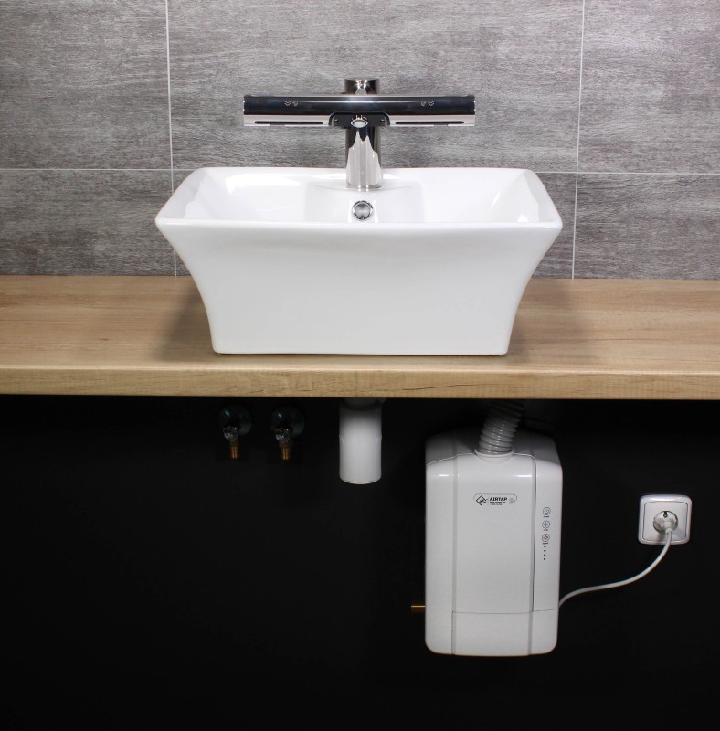 Inštalácia sušiča vo vodovodnej batérii Jet Dryer AIRTAP je možná bez nutnosti zásadných stavebných úprav. Jednotka sa jednoducho postaví pod umývadlo. Ďalšou možnosťou je montáž na závesnú dosku.