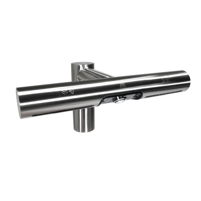 Odolný a kompaktnýTelo batérie so sušičom v tvare písmena T je vyrobené z kvalitnej kartáčovanej ocele. Jednotka sušiča je bezpečne ukrytá pod umývadlom, mimo dosahu prípadných vandalov. Sušič tak zároveň zbytočne nezaberá miesto.