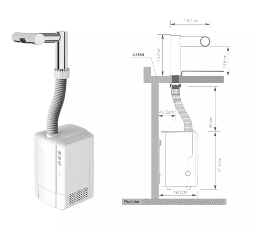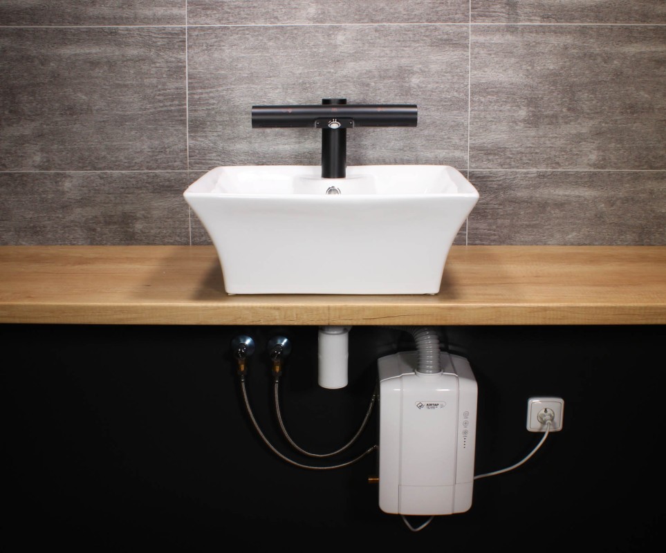 Inštalácia sušiča vo vodovodnej batérii Jet Dryer AIRTAP je možná bez nutnosti zásadných stavebných úprav. Jednotka sa jednoducho postaví pod umývadlo. Ďalšou možnosťou je montáž na závesnú dosku.