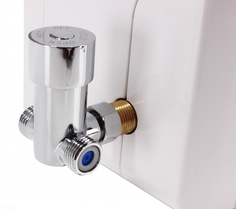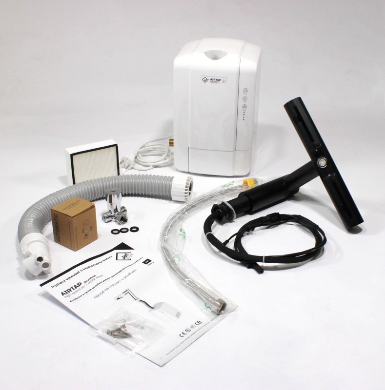 Súčasťou každého balenia sušiča rúk s vodovodnou batériou 2v1 je zmiešavací ventil umožňujúci nastavenie príjemnej teploty vody. Jet Dryer AIRTAP je tiež možné rovno pripojiť iba na studenú vodu.