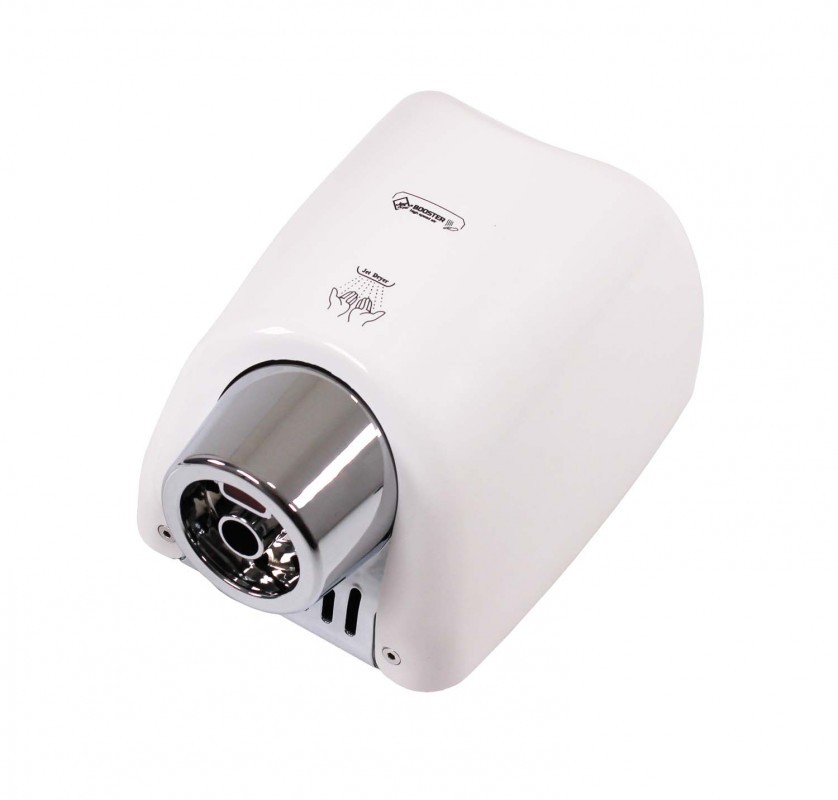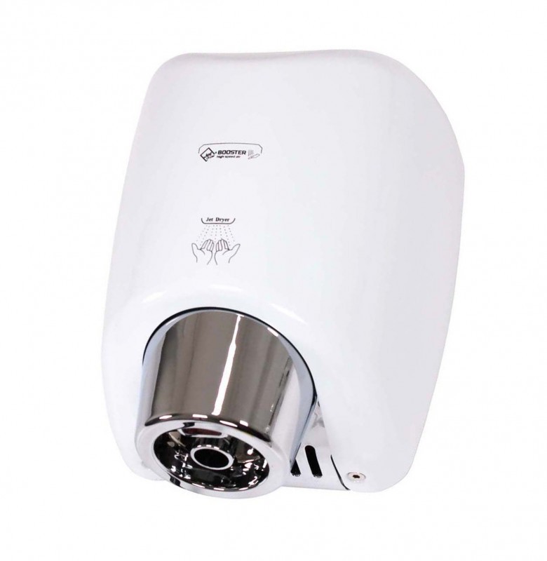 Tryska v zaujímavom kruhovom dizajneSušič rúk BOOSTER sa od iných sušičov vyznačuje výraznou pochrómovanou tryskou kruhového tvaru. Vďaka silnému 550 W motoru je vysušenie rúk veľmi rýchle.