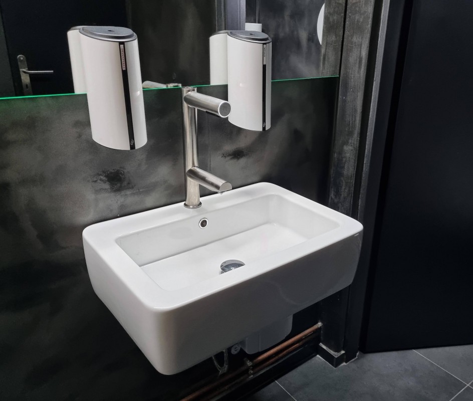 Inovatívny dizajn sušiča Jet Dryer DUO kombinuje tryskový sušič s automatickou vodovodnou batériou. Ruky si tak môžete pohodlne umyť aj vysušiť na jednom mieste – priamo v umývadle. Jet Dryer DUO je vybavený HEPA filtrom. Vodovodné batérie aj sušič je bezkontaktný pre maximálne hygienickú prevádzku. Vďaka tomu, že má každé umývadlo svoj sušič, prevádzka na toaletách je plynulá a bez front.