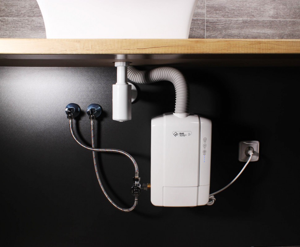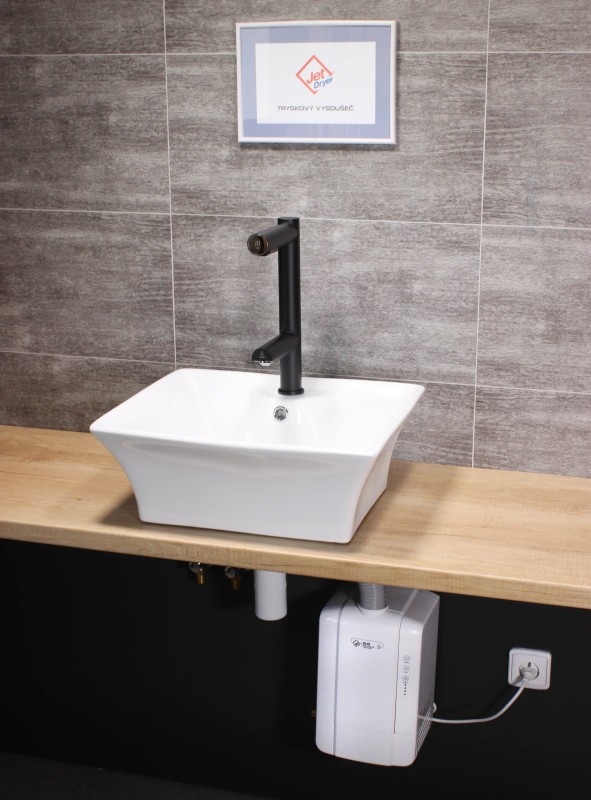 Inštalácia sušiča vo vodovodnej batérii Jet Dryer DUO je možná bez nutnosti zásadných stavebných úprav. Jednotka sa jednoducho postaví pod umývadlo. Ďalšou možnosťou je montáž na závesnú dosku.